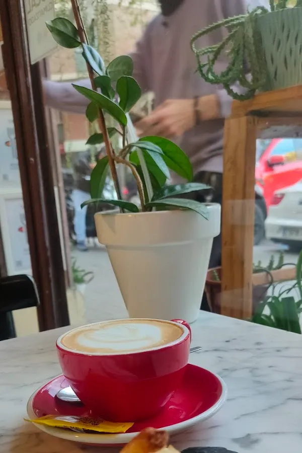 Mi pareja y yo solemos ir a esta cafetería y puedo decir con certeza que es de los mejores del barrio. La atención siempre es agradable y además pet friendly! Es un espacio pequeño pero acogedor. Solemos pillar el café aquí y a veces comemos las berlinas rellenas de pistacho que nos flipan! También alguna vez hemos pedido salado como tostadas y alguna que otra delicia de la vitrina. Es uno de nuestros favoritos 🥹💜
